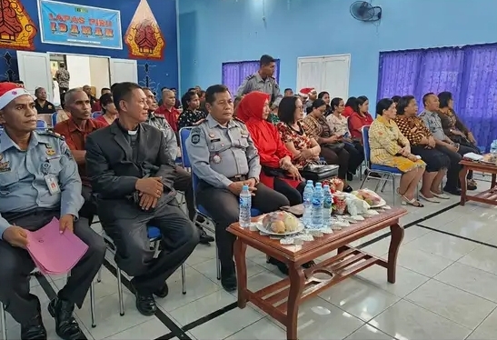 Tinta-rakyat.com-Piru//Keluarga besar Lembaga Pemasyarakatan (Lapas) Kelas IIB Piru menggelar ibadah perayaan Natal Tahun 2024 bersama Warga Binaan dengan penuh khidmat dan nuansa kebersamaan, Rabu(18/12). Dengan tema “Yesus Datang ! Semua Orang yang MenerimaNya DiberiNya Kuasa Menjadi Anak-anak Allah” perayaan Natal ini turut dihadiri oleh Kepala Lapas Piru, Dawa’I beserta seluruh jajaran Pegawai Lapas Piru, Purna Bakti, beserta Warga Binaan Lapas Piru, Pendeta Jemaat Gereja Protestan Maluku (GPM) Piru, J. Lohy dan Para Pembina kerohanian Kristen Kementerian Agama Kabupaten Seram Bagian Barat (SBB).