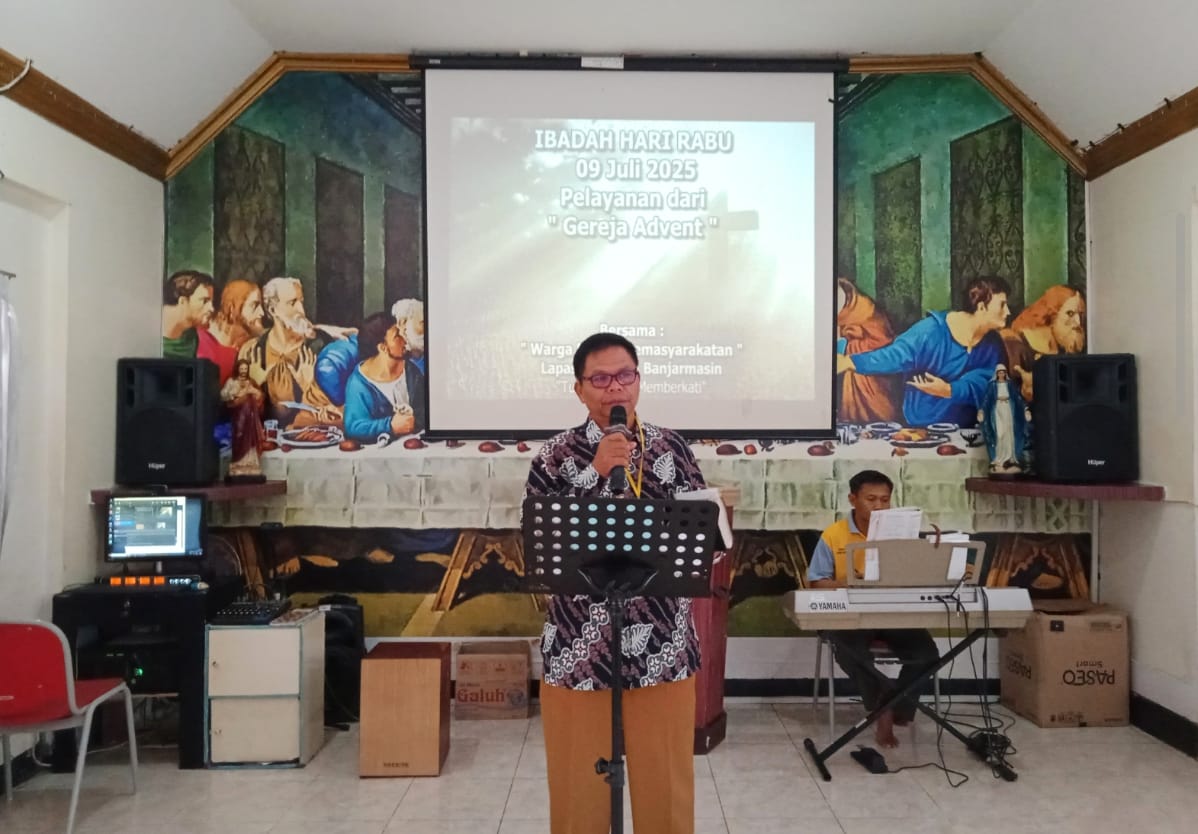Suasana penuh khidmat mewarnai pelaksanaan ibadah rutin bulanan hari Rabu yang digelar di Gereja Oikumene Lembaga Pemasyarakatan (Lapas) Kelas IIA Banjarmasin, Rabu (09/07). Kegiatan pelayanan kali ini diisi oleh Gereja Masehi Advent Hari Ketujuh, dengan mengusung tema pembelajaran mendalam dari Kitab Imamat mengenai larangan makanan haram menurut Alkitab.