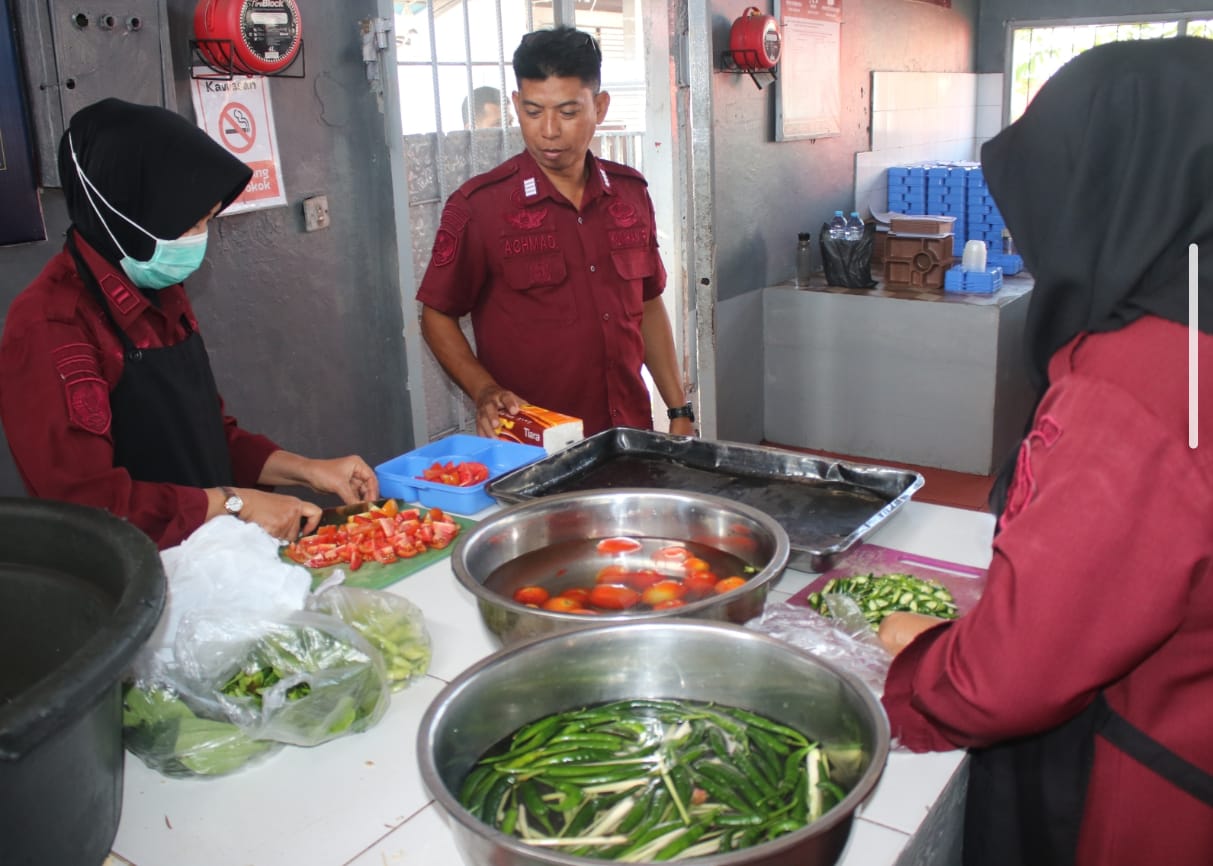 Petugas pengelola dapur turut melakukan pengawasan terhadap seluruh proses, mulai dari pemilahan bahan mentah hingga distribusi makanan ke masing-masing blok hunian warga binaan.