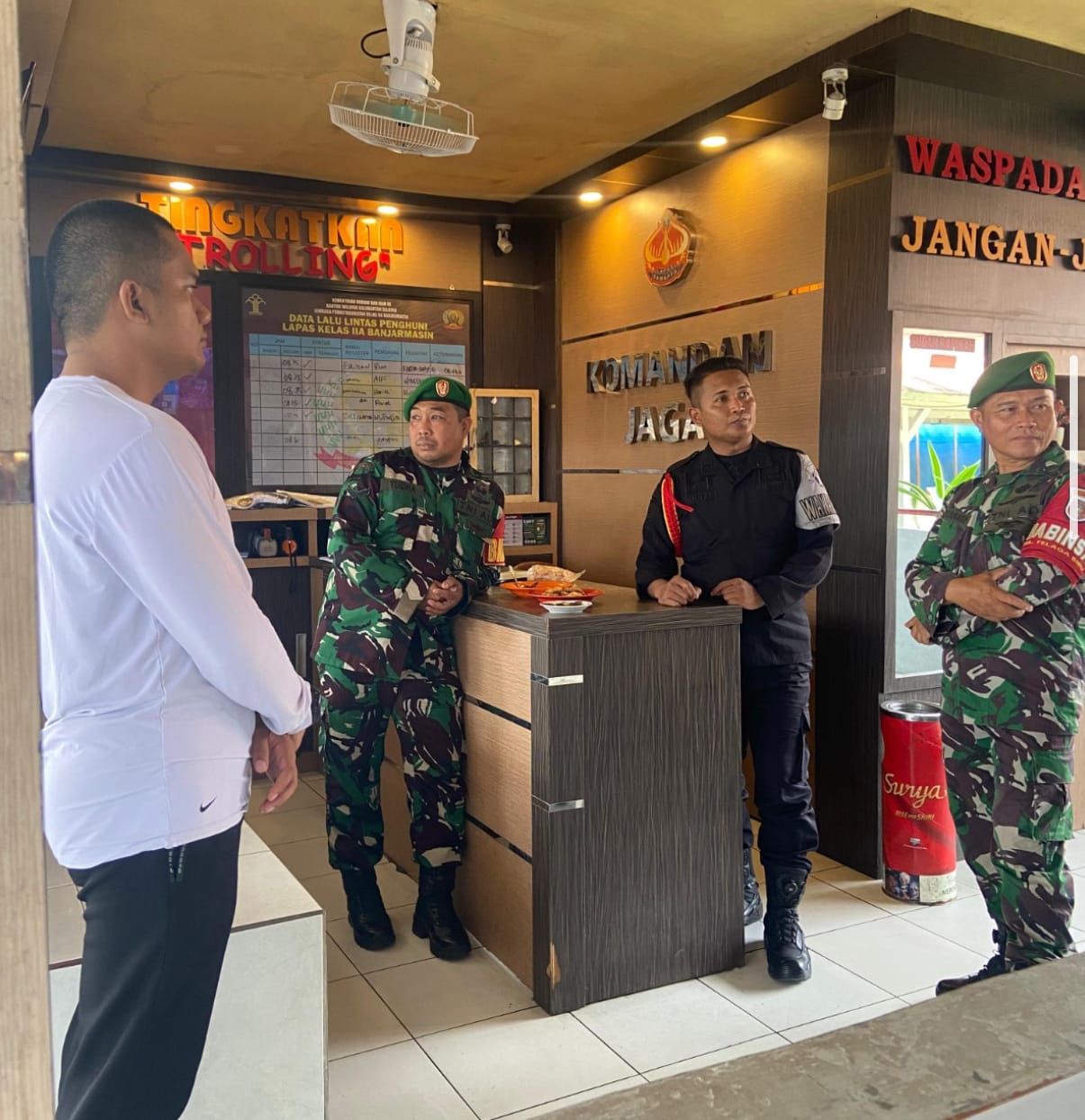 Lapas Kelas IIA Banjarmasin menerima kunjungan dari anggota Babinsa Kodim 1007 Banjarmasin, yaitu Serka Rustanady dan Serda Yudha, pada Sabtu (12/07). Kunjungan tersebut disambut langsung oleh Wakil Kepala Regu Pengamanan (Wakarupam), Junifar, yang mewakili jajaran Kesatuan Pengamanan Lapas.