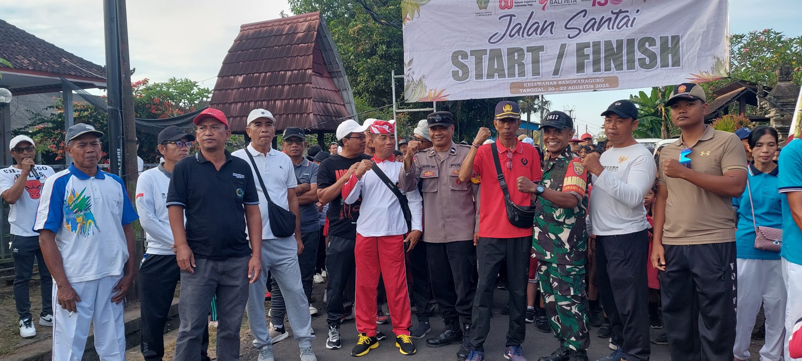 Tinta-rakyat.com-Jembrana//Warga Kelurahan Sangkar Agung, Kecamatan Jembrana, Kabupaten Jembrana, tumpah ruah di jalanan untuk mengikuti kegiatan jalan santai yang meriah pada Sabtu, 23 Agustus 2025. Acara ini diselenggarakan dalam rangka memperingati Hari Ulang Tahun (HUT) Kota Negara ke-130 dan HUT Kemerdekaan Republik Indonesia ke-80 dengan tema “Angunggah Shanti/Menjaga Kebersamaan bersama.”