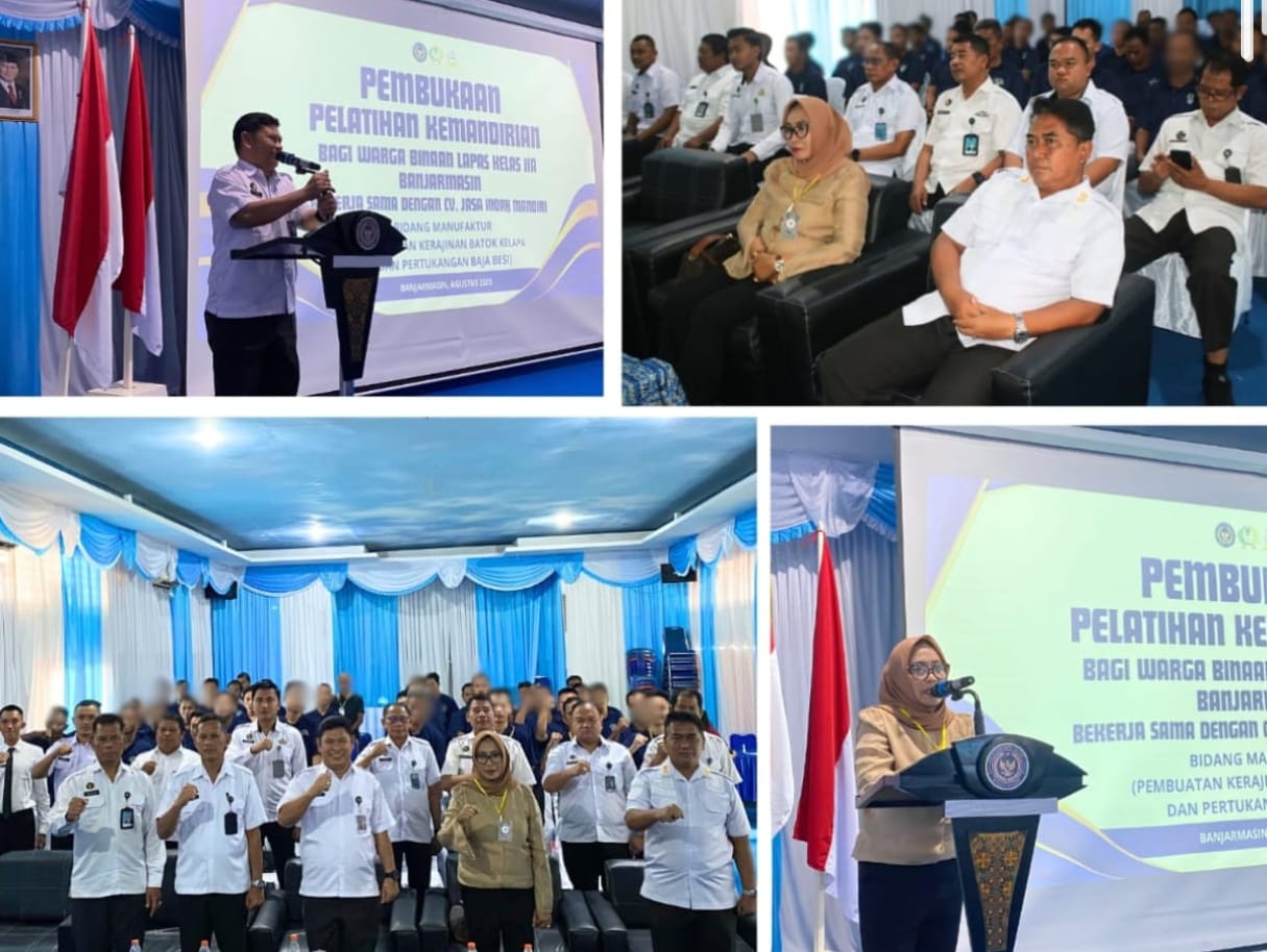Lembaga Pemasyarakatan (Lapas) Kelas IIA Banjarmasin pada Sabtu (23/08) menggelar pembukaan pelatihan pembuatan kerajinan batok kelapa dan pertukangan baja besi pada bidang manufaktur, bekerja sama dengan CV. Jasa Indah Mandiri.
