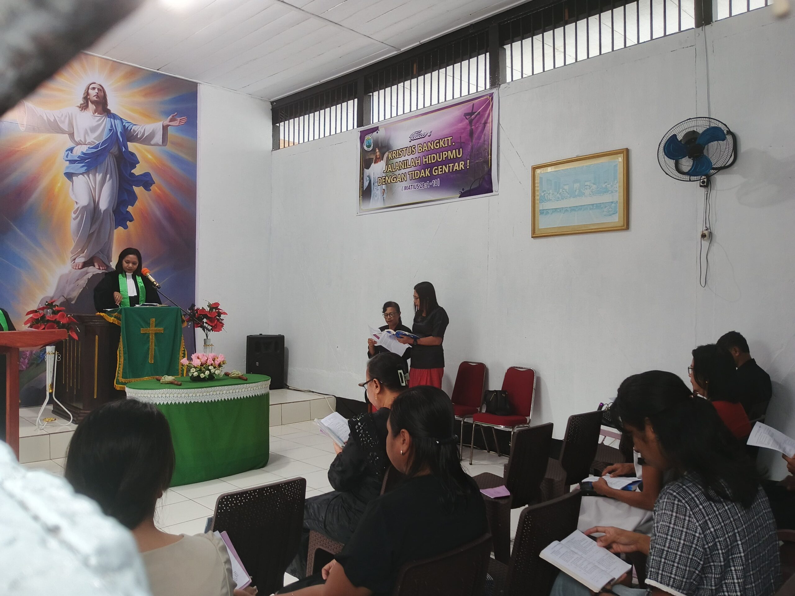 Suasana ibadah berlangsung khidmat dengan puji-pujian Solo rohani dibawakan staf Fraindrik Pesurnay dan warga binaan , sedangkan dua warga binaan lainnya mempersembahkan duet pujian yang menambah kekhusyukan dan sukacita jemaat.