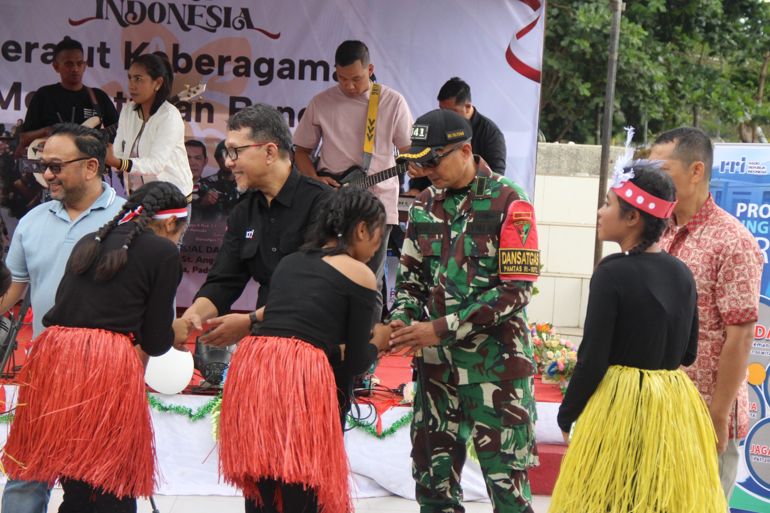 Tinta-rakyat.com-Belu//Dansatgas Yonif 741/GN hadiri acara live RRI dengan tema “Kita Indonesia, Merajut Keberagaman Menyatukan Bangsa,” yang berlangsung di titik nol Pelataran Plaza Perizinan Atambua, Kabupaten Belu, NTT. Sabtu (23/08/2025).