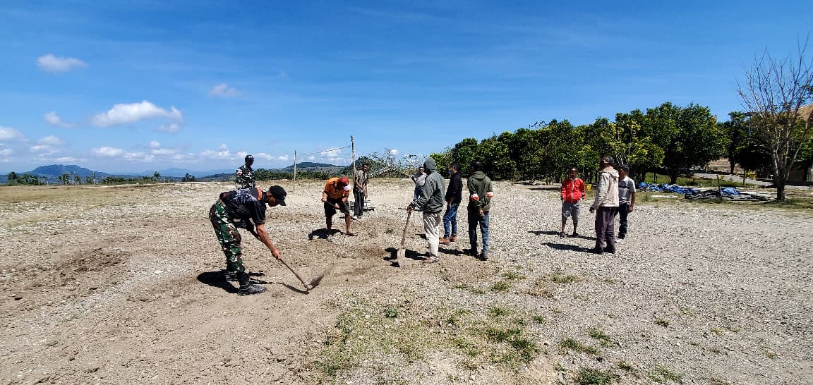 Diketahui bahwa lapangan tersebut merupakan lapangan utama yang sering digunakan untuk serangkaian kegiatan Desa baik untuk masyarakat maupun siswa sekolah sehingga perlu adanya perawatan rutin, sehingga Satgas Pos Nananoe bersama masyarakat atas kerjasama dengan pihak pemerintah Desa dapat melaksanakan pembersihan dan perawatan secara bersama-sama.
