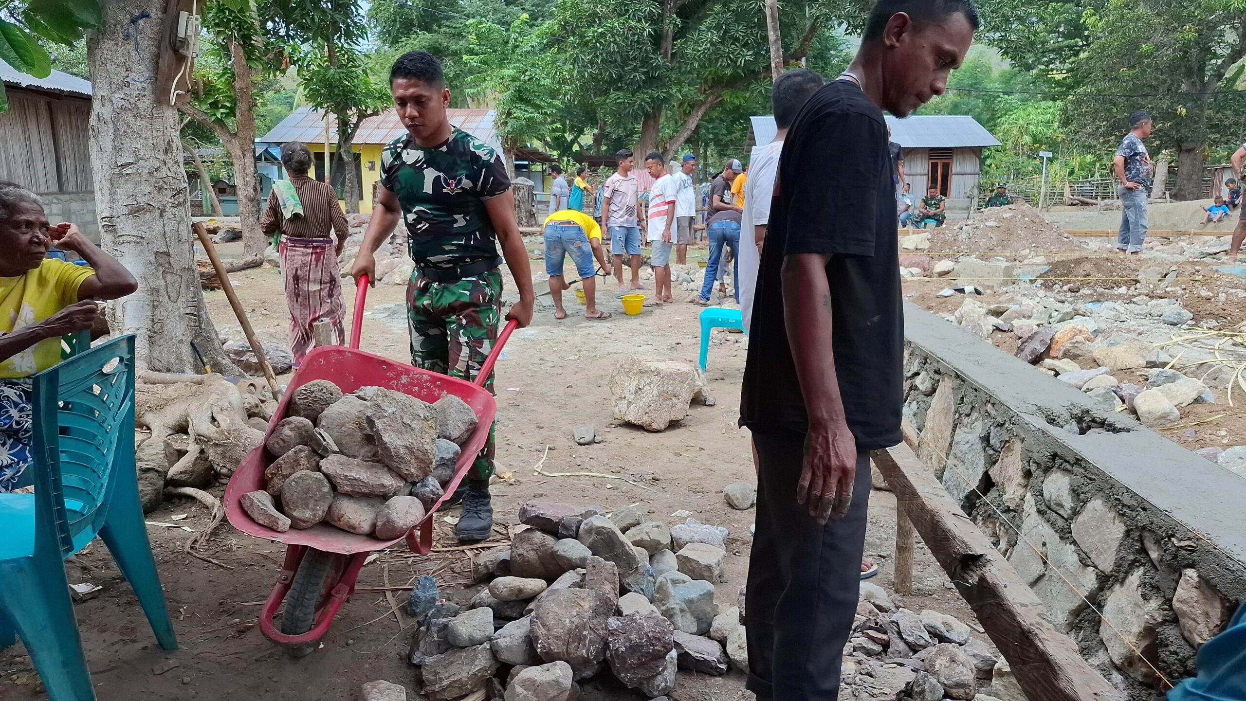 Tinta-rakyat.com-Belu//Pos Silawan membantu warga binaan dalam pembangunan rumah di Desa Silawan, Kecamatan Tasifeto Timur, Kabupaten Belu. Sabtu (06/09/2025).