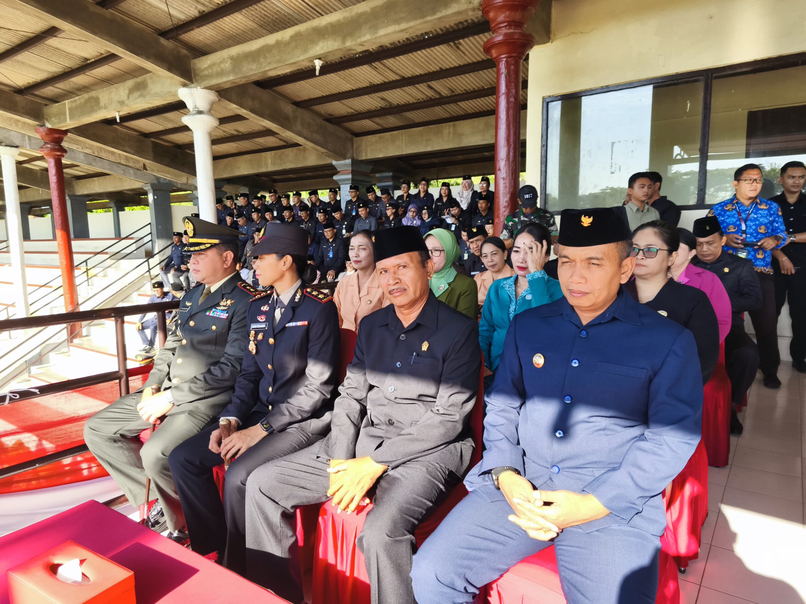 Upacara yang berlangsung tertib dan aman ini dihadiri oleh seluruh pimpinan daerah, termasuk Wakil Bupati, Kapolres, perwakilan Kajari, dan Ketua Pengadilan Negeri.