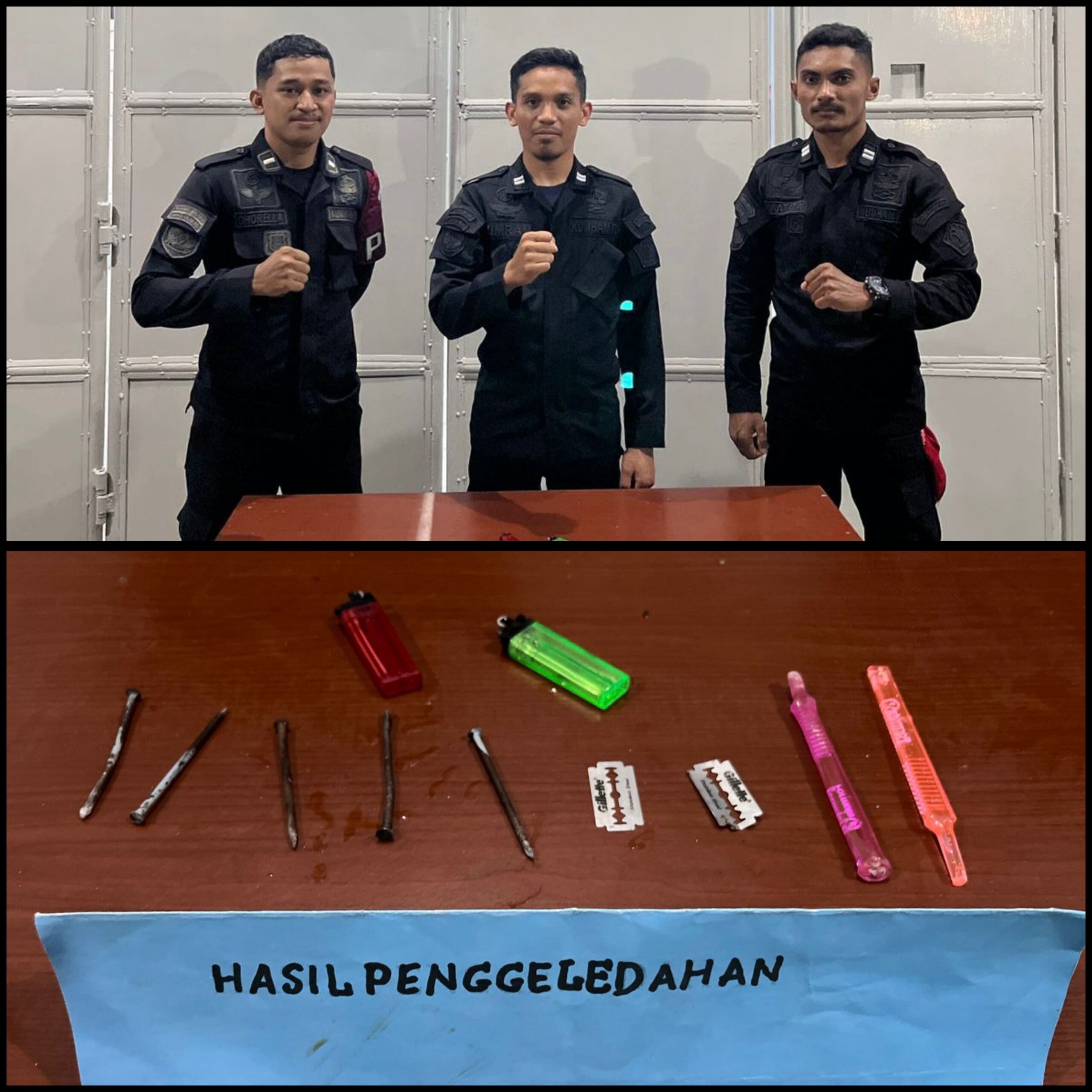Dari hasil penggeledahan, petugas menemukan beberapa barang yang tidak seharusnya berada di dalam blok hunian, antara lain paku, sikat gigi bekas, silet, serta korek api. Seluruh barang tersebut langsung diamankan sebagai bentuk penertiban dan pencegahan potensi penyalahgunaan.