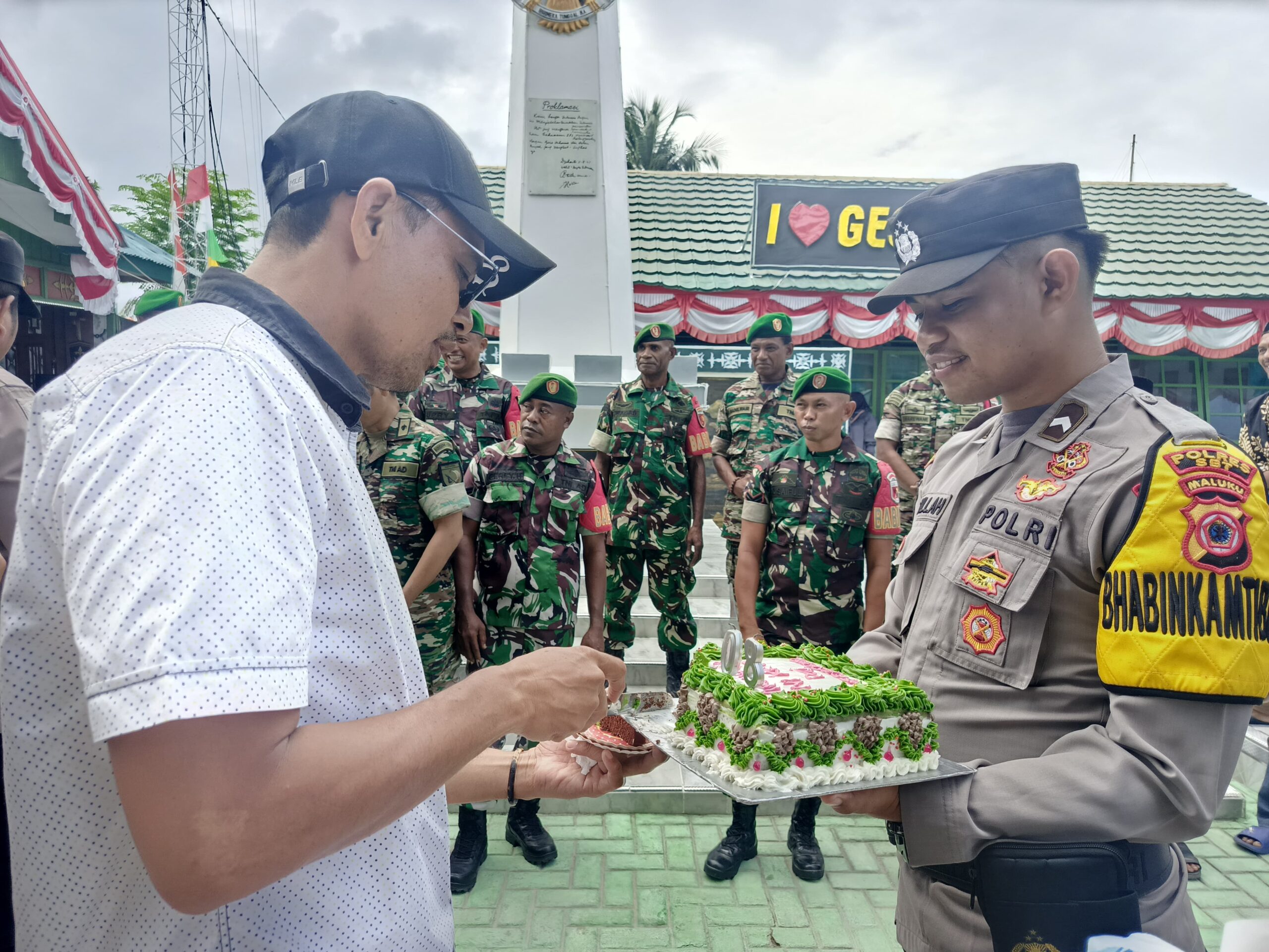 Tinta-rakyat.com-Geser//Sebagai upaya memperkuat korelasi positif sekaligus menjaga solidaritas antar aparat penegak hukum (APH) di wilayah Kecamatan Seram Timur, Lembaga Pemasyarakatan Kelas III Geser turut berpartisipasi melalui kehadiran Kepala Urusan Tata Usaha, Muhammad Alhamid dalam rangakaian kegiatan pemotongan kue dan doa bersama sebagai bentuk rasa syukur dalam perayaan HUT TNI Ke-80 Tahun 2025 yang di gelar di depan pelataran Kantor Koramil 1502-04/Geser, senin (06/10/2025). Kegiatan ini dihadiri Forkopimcam Seram Timur yakni Kapolsek Seram Timur, Iptu Mothahar Solissa, SH.I, bersama jajaran serta Pejabat Kepala Pemerintah Negeri Geser, Sulaini Kelian dan tokoh masyarakat.