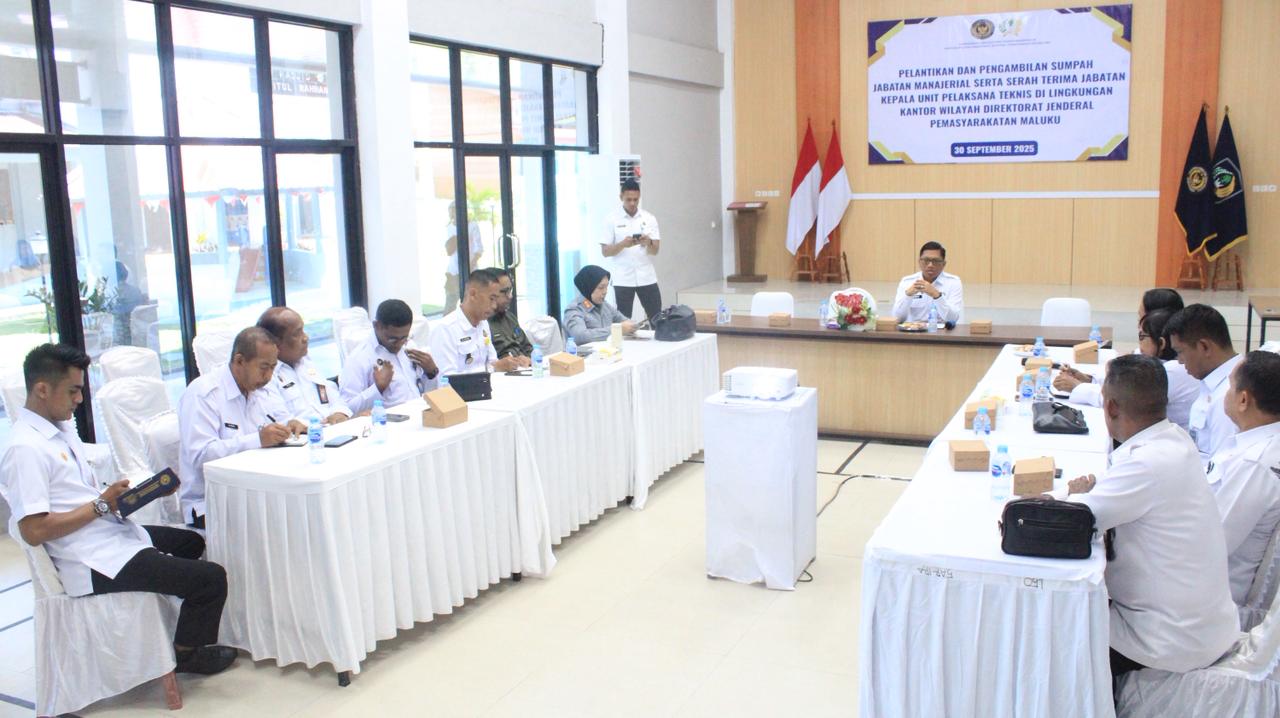 Tinta-rakyat.com-Ambon//Kepala Kantor Wilayah Direktorat Jenderal Pemasyarakatan Maluku, Ricky Dwi Biantoro mengumpul seluruh Kepala Satuan Kerja Lembaga Pemasyarakatan dan Rumah Tahanan Negara Se- Maluku untuk melaksanakan monitoring dan evaluasi terkait Kerja Teknis Pemasyarakatan di Triwulan III dan memasuki Triwulan IV, Senin (6/10). Kegiatan dibuka oleh Kakanwil Ditjenpas Maluku, Ricky Dwi Biantoro bertempat di Aula serba Guna Lembaga Pembinaan Khusus Anak (LPKA) Kelas II Ambon.