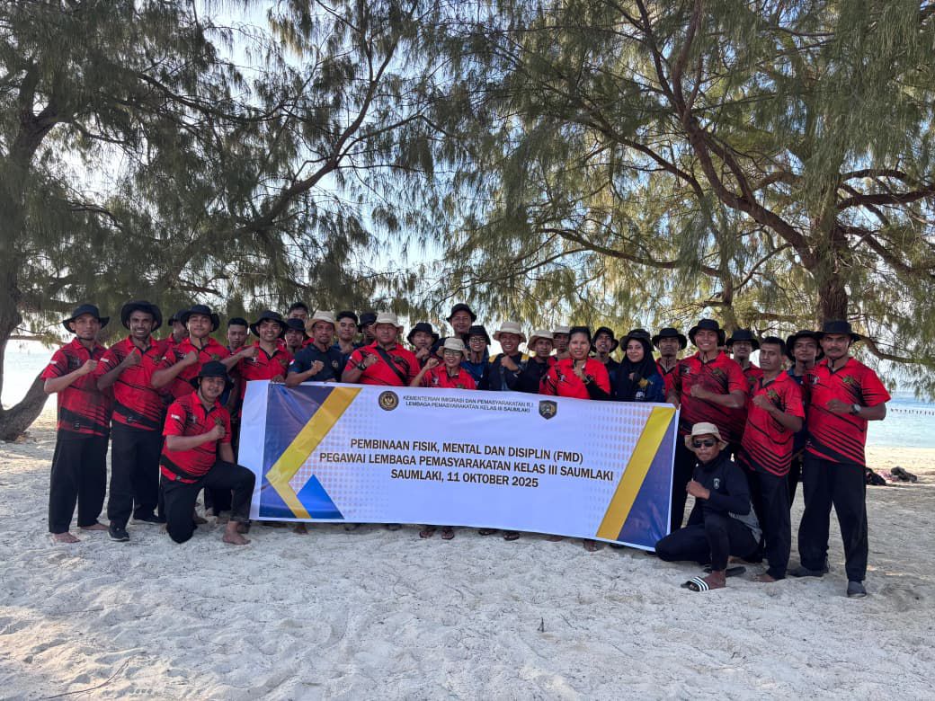 Tinta-rakyat.com-Saumlaki//Kembali menunjukkan komitmennya dalam peningkatan kualitas sumber daya manusia (SDM) Lembaga Pemasyarakatan Kelas III Saumlaki di bawah Kantor Wilayah Direktorat Jenderal Pemasyarakatan Maluku, Menggelar kegiatan Pembinaan Fisik, Mental, dan Disiplin (FMD) bagi seluruh jajarannya, Kegiatan yang dilaksanakan di desa Matakus, ini bertujuan untuk memperkuat karakter, kedisiplinan, serta sinergi antarpetugas, Sabtu (11/10).