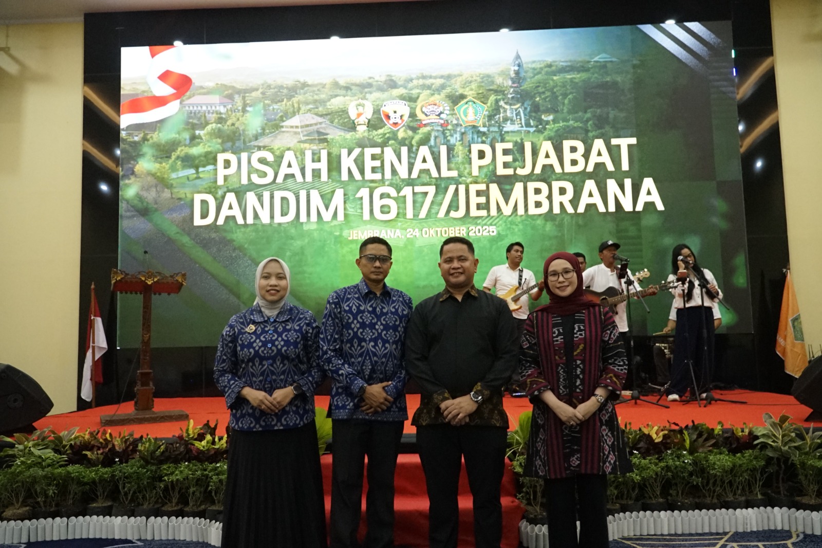 Tinta-rakyat.com-Jembrana//Komando Distrik Militer (Kodim) 1617/Jembrana menggelar acara Pisah Kenal Pejabat Komandan Kodim (Dandim) yang berlangsung hangat dan penuh keakraban di Bolroom Gedung Kesenian Ir. Soekarno, Jumat malam (24/10). Acara ini menjadi penutup rangkaian serah terima jabatan, di mana Letkol Inf M. Adriansyah, S.I.P., M.I.P. secara resmi menyerahkan tongkat estafet kepada Letkol Inf Sy. Gapur Thalib, S.I.P., M.Si.