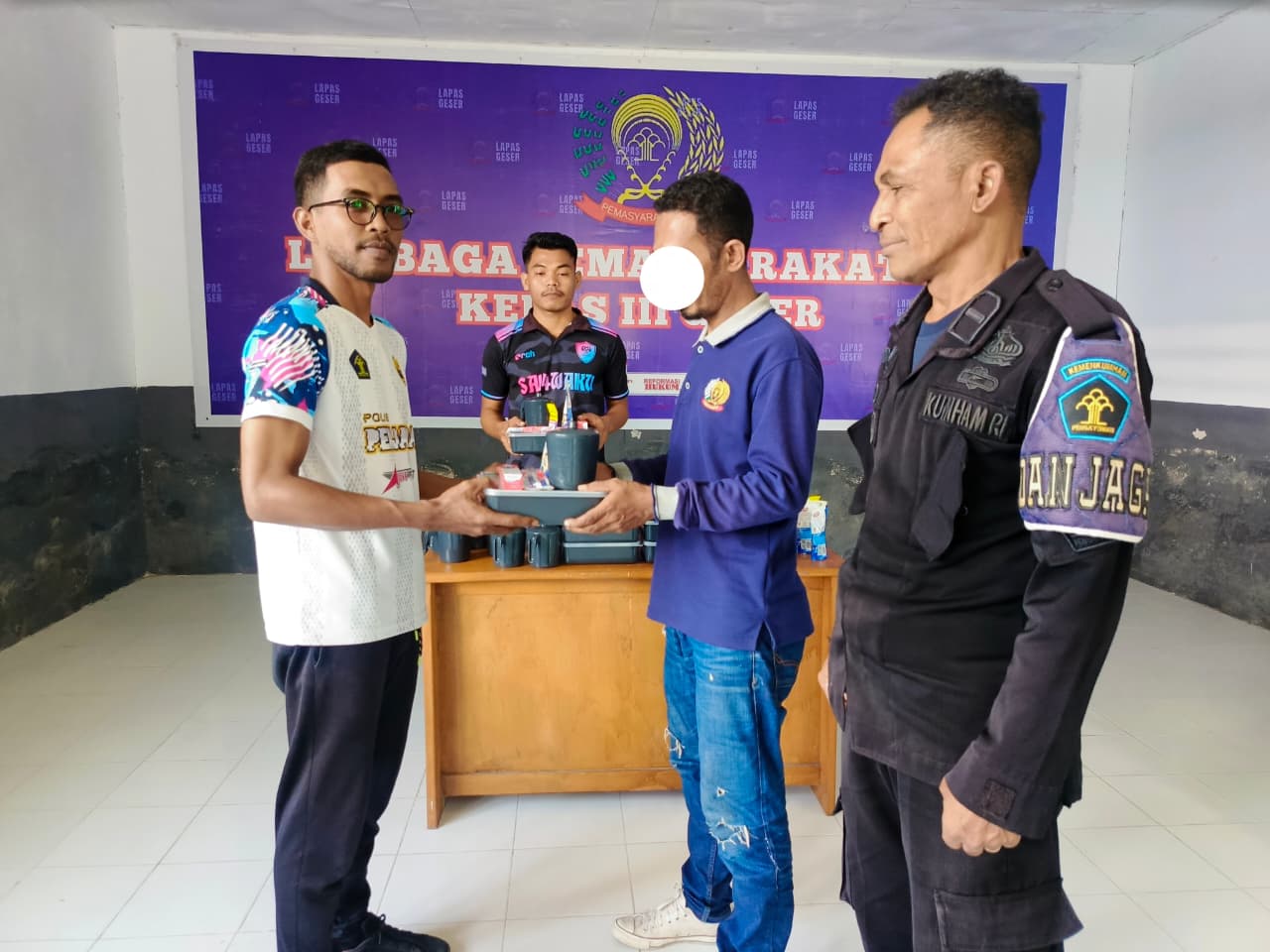 “Warga Binaan berhak mendapatkan peralatan mandi dan perlengkapan makan. Hal ini diatur dalam Undang-undang nomor 22 Tahun 2022 tentang Pemasyarakatan. Perlengkapan ini menjadi wujud nyata kepedulian dan pelayanan prima Lapas Geser terhadap warga binaan sekaligus menjadi implementasi Keputusan Direktur Jenderal Pemasyarakatan (Dirjenpas) nomor PAS-16.OT.02.02 Tahun 2024 tentang standarisasi atau penyeragaman warna alat makan dan alat minum pada Satuan Kerja Pemasyarakatan,” jelasnya.
