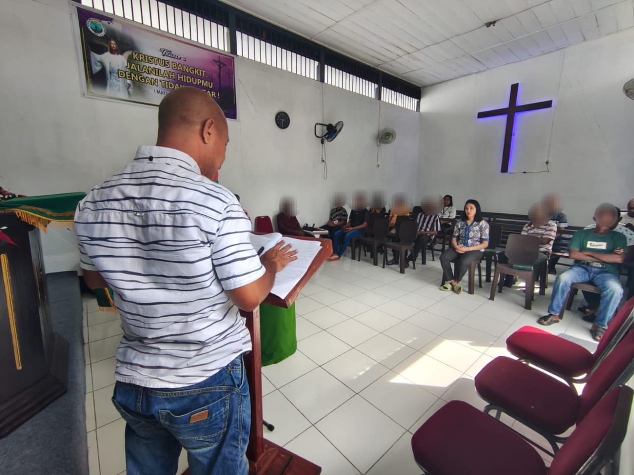 Rangkaian kegiatan berlangsung tertib, dimulai dengan masuk ibadah dan dilanjutkan dengan puji-pujian. Seluruh peserta mengikuti ibadah dengan penuh kekhidmatan, mencerminkan antusiasme mereka terhadap pembinaan rohani yang diselenggarakan secara berkelanjutan.
