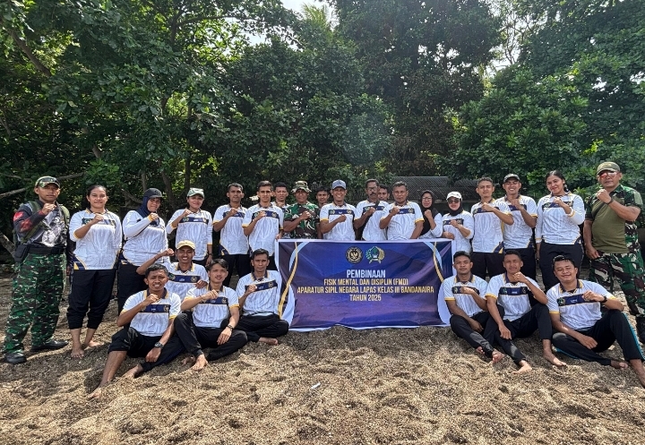 Tinta-rakyat.com-Bandanaira//Semangat kebersamaan dan disiplin terpancar kuat dalam kegiatan Pembinaan Fisik Mental dan Disiplin (FMD) yang digelar Lembaga Pemasyarakatan (Lapas) Kelas III Bandanaira di Pantai Malole Dusun Mangkubatu Desa Rajawali Kecamatan Banda, Kabupaten Maluku Tengah bersama Komando Rayon Militer (Koramil) 1502-01/Banda, Sabtu (22/11).