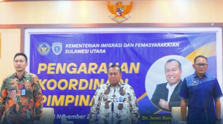 Tinta-rakyat.com-Manado//Kepala Kantor Wilayah Direktorat Jenderal Pemasyarakatan Sulawesi Utara, Tonny Nainggolan, bersama Kepala Kantor Wilayah Direktorat Jenderal Imigrasi Sulut, Ramdhani, mendampingi Inspektur Wilayah I, Iwan Santoso, dalam kegiatan pengarahan koordinasi pimpinan yang digelar di Kantor Imigrasi Kelas I Manado.