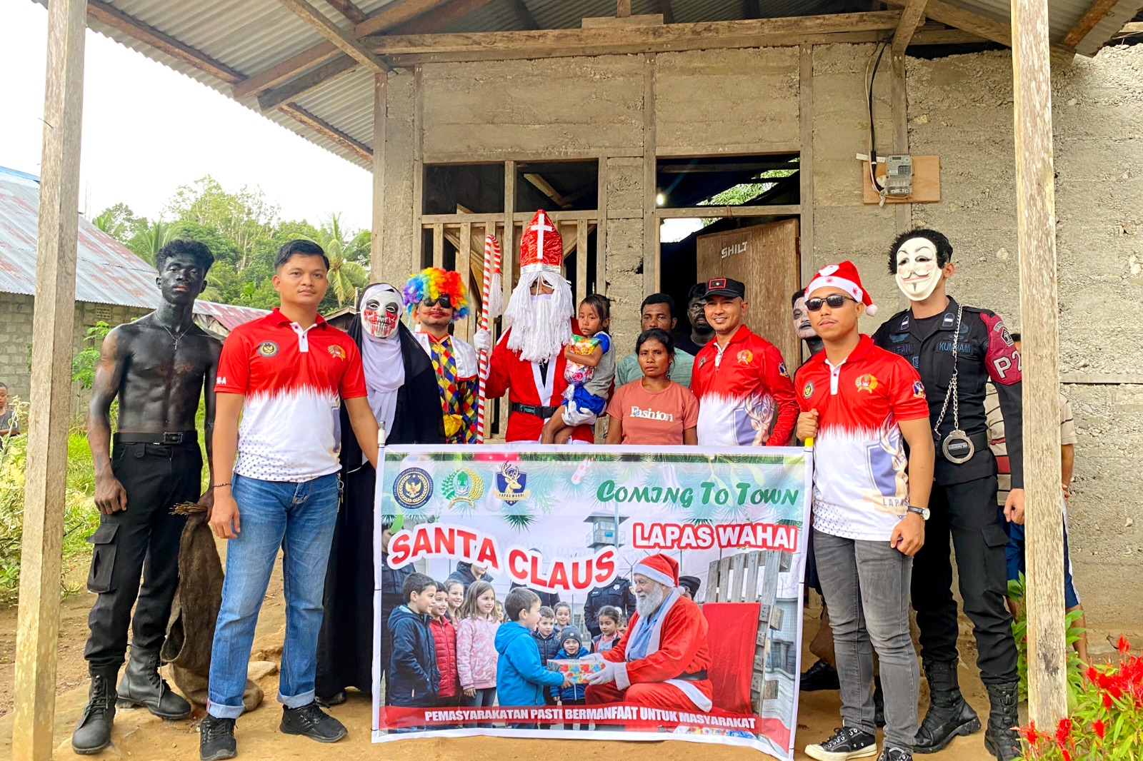 Tinta-rakyat.com-Wahai// Suasana Natal yang hangat dan penuh kasih menyelimuti Desa Solea, salah satu desa terpencil di Kecamatan Seram Utara yang jarang terjamah oleh kegiatan sosial. Kali ini keceriaan datang dari inisiatif unik Lembaga Pemasyarakatan (Lapas) Kelas III Wahai, dimana Para Petugas Lapas mengenakan kostum Santa Claus dan perankan tokoh lainnya, untuk membagikan bingkisan Natal kepada 70 puluh anak-anak setempat, Sabtu (13/12).
