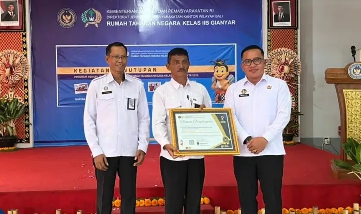 Tinta-rakyat.com-Gianyar//Kantor Wilayah Direktorat Jenderal Pemasyarakatan (Ditjenpas) Bali yang diwakili oleh Kepala Bidang Pelayanan dan Pembinaan, I Wayan Putu Sutresna, menghadiri kegiatan penutupan program rehabilitasi di Rumah Tahanan Negara (Rutan) Kelas IIB Gianyar. Senin (15/12)