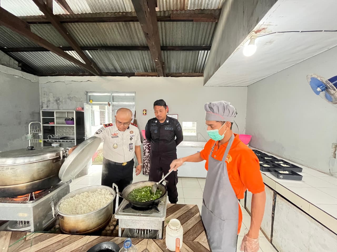 Pengontrolan dilakukan secara detail meliputi kebersihan dapur, kondisi peralatan memasak, tempat penyimpanan bahan makanan, hingga proses pengolahan serta kesesuaian menu makanan warga binaan berdasarkan jadwal menu sepuluh hari. Dalam kegiatan tersebut, Kalapas juga melakukan pengecekan terhadap ketersediaan dan jumlah bahan baku yang disimpan, seperti beras, sayuran, lauk pauk, dan bumbu dapur, yang disesuaikan dengan kebutuhan konsumsi warga binaan untuk beberapa hari ke depan guna memastikan kecukupan serta kelayakan bahan makanan.